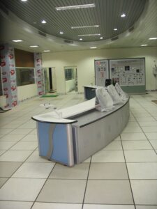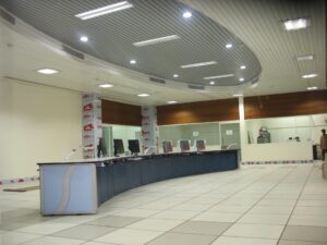 84C Metal linear and Gypsum 2’×2’ modular ceilings across control and operational areas.